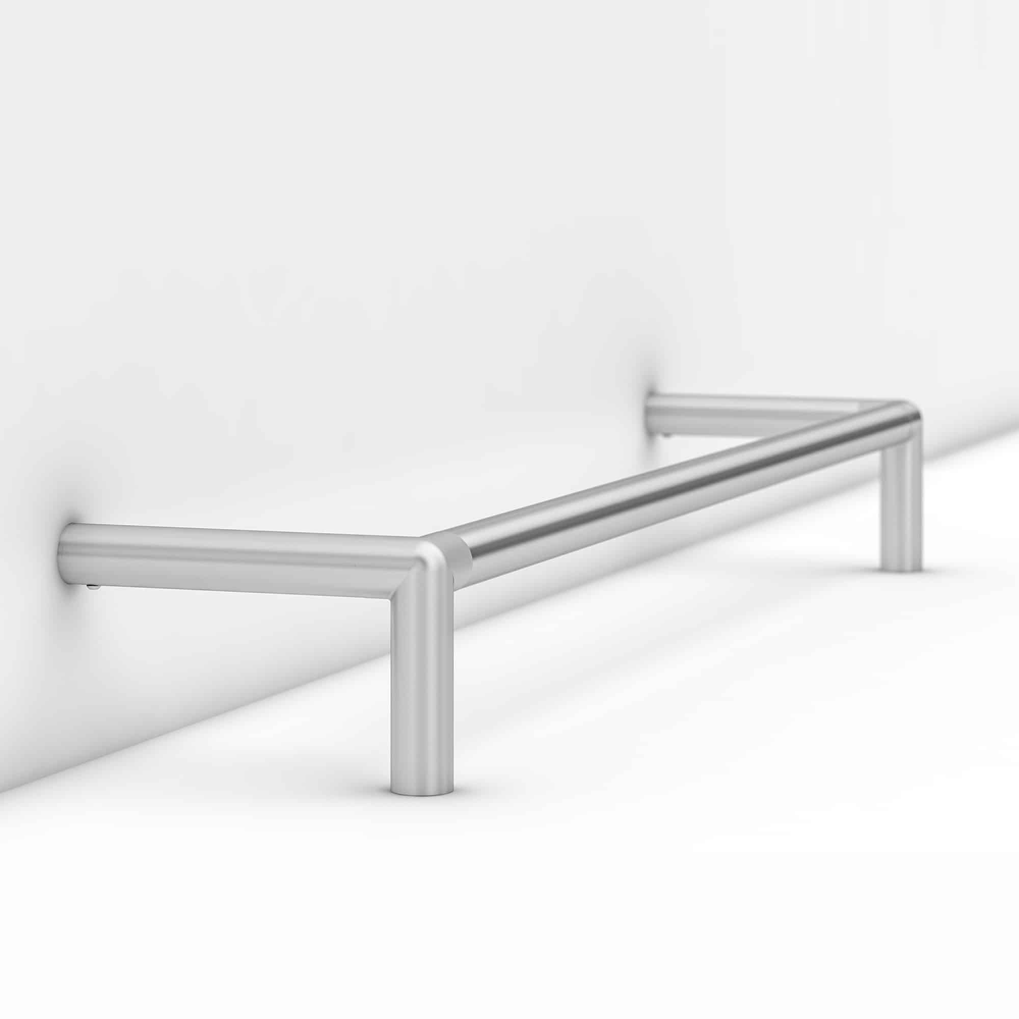 - Provides a detectable rail barrier for wall-mounted displays to meet safety and accessibility codes, preventing protrusion hazards
