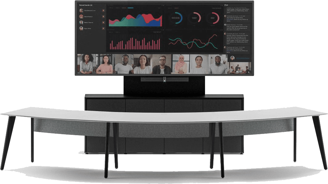 This powerful, turnkey bundle includes the essential technology furniture. ultra-large video processor and 21:9 display, camera, audio, and complete control of it all – all in one. Your business and teams enjoy simple selection and simple deployment. Now, any space and Microsoft Teams meeting can be most quickly and easily deployed, while driving a better way for stakeholders to connect in the room and around the world.