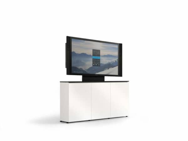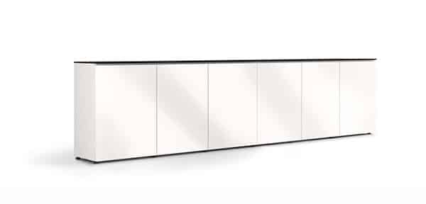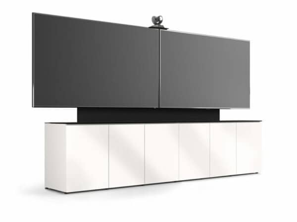 At just 6-inches deep, the Ultra-Low-Profile Cabinet transforms spaces, accommodating screens from 55 inches to dual 100-inch plus all essential A/V technology and cables – without taking up space. The same depth as most smart phones, this elegant piece is great for walkways and smaller spaces.