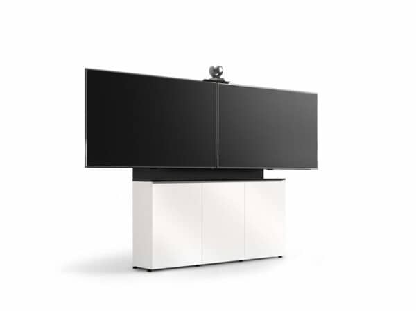 At 21-inches deep, this popular model offers all the benefits of single or multiple display mounting plus extra space for equipment, media and storage, creating a fully integrated system. The freestanding, large-capacity design is perfect for new and retrofit installations, making setup quick and efficient.
