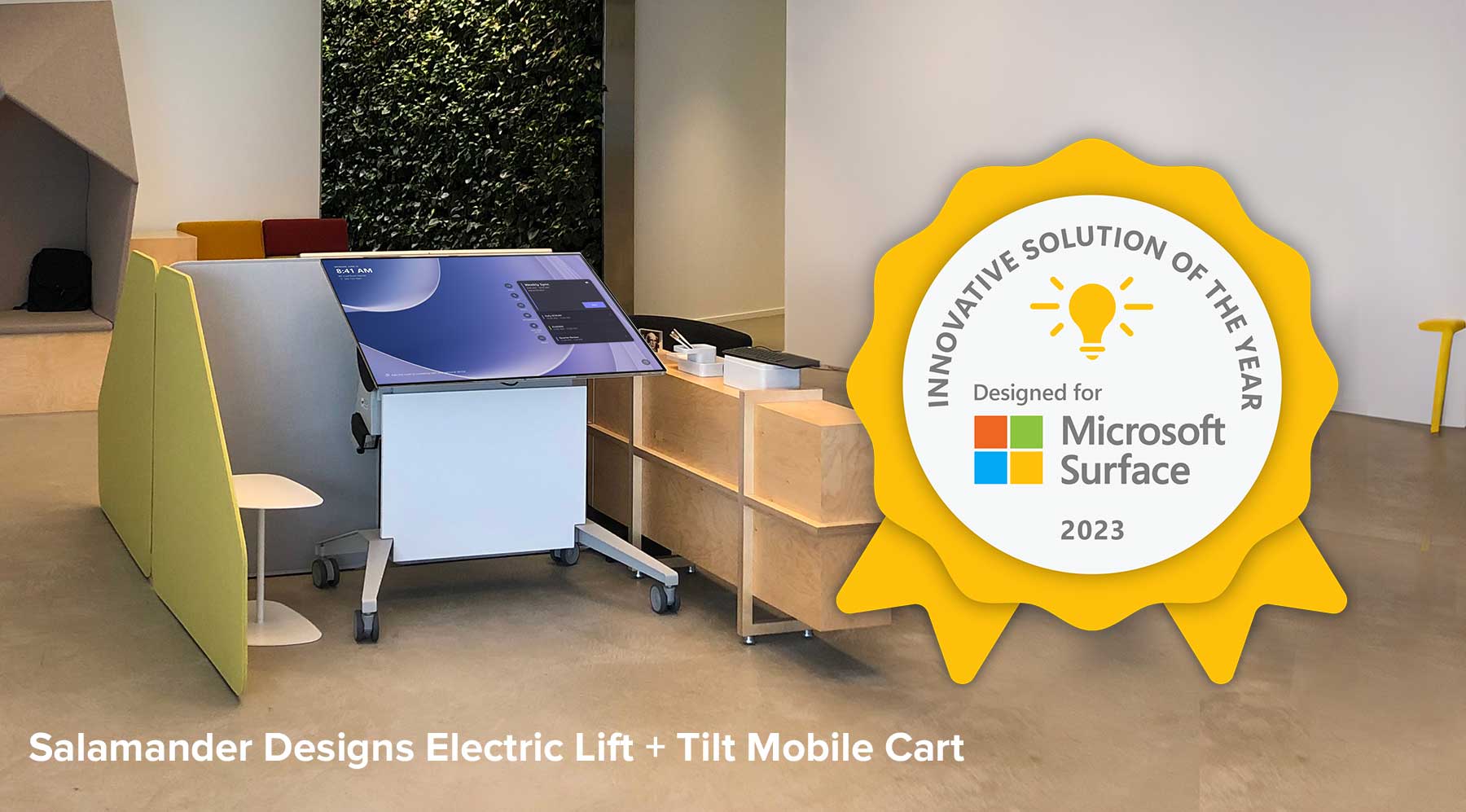 “The Salamander Electric Lift and Tilt Stand offers the ultimate ergonomic experience for the Microsoft Surface Hub. Our commitment to user satisfaction is reflected in the overwhelming positive feedback we’ve received, culminating in the prestigious recognition as the Most Innovative Surface accessory of the year.” said Scott Srolis, Senior VP of Sales and Marketing at Salamander Designs. “We are truly honored by this acknowledgment.”