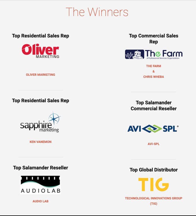 „Dies ist eine großartige Gruppe engagierter Menschen, die als Erweiterung unseres Teams fungieren, und wir gratulieren ihnen allen zu ihrer hohen Produktivität in einem sehr ungewöhnlichen Jahr“, sagte Chris Discotto, Director of Sales and Business Development bei Salamander Designs.