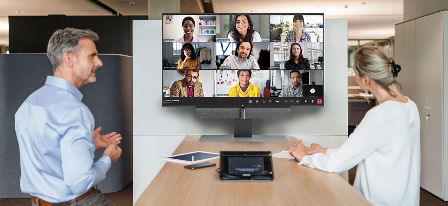 Diseñada para fomentar la colaboración y la productividad, esta innovadora solución garantiza que las reuniones híbridas sean más atractivas y fáciles de implementar. Al integrar tecnología de visualización avanzada, hardware de audio y vídeo inteligente y un elegante soporte diseñado específicamente para este fin, la solución de videoconferencia LG Express Install para Microsoft Teams Rooms proporciona a las empresas la confianza necesaria para adaptarse plenamente a la evolución del lugar de trabajo.