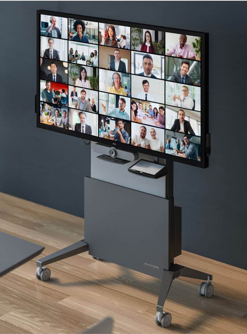 Los carros móviles Salamander son los mejores de su clase y son fáciles de usar con los tipos y tecnologías de reuniones virtuales más populares, como Cisco, Jabra Crestron, Logitech y muchos más. Con Salamander, las videoconferencias se vuelven más fáciles gracias a sus soluciones llave en mano. Ofrecen una pantalla, una posición de la cámara y una visualización accesibles, cómodas y ergonómicamente correctas que mejoran al instante la experiencia de cada usuario y aumentan la productividad y la movilidad.