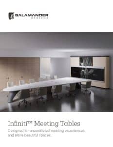 Salamander Designs llega al infinito y más allá con la serie de mesas Infiniti™, diseñada exclusivamente para ofrecer una experiencia completa e inigualable en videoconferencias y reuniones para salas de juntas y espacios ejecutivos y de liderazgo. Esta impresionante serie de mesas de trabajo de alta gama, con capacidad para entre 6 y 14 personas, ofrece innovadoras formas trapezoidales diseñadas para optimizar las conferencias actuales, de modo que todos los participantes puedan verse, oírse y participar plenamente, independientemente de dónde se encuentren. Con un diseño de calidad museística y un estilo artístico, no hay otras mesas de conferencia como estas en el mercado.