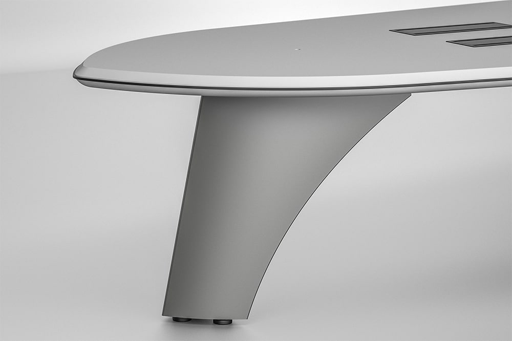 Con el apoyo de una base exclusiva de acero esculpido con un sistema de marco de aluminio extruido, Infiniti puede adaptarse a cualquier sistema de comunicaciones unificadas y tecnología audiovisual. Una infraestructura de cables recorre toda la longitud de la mesa, desde arriba hasta abajo, donde la base llega al suelo. Sin embargo, nadie lo notará. La superficie gris paloma está perfectamente optimizada para videoconferencias, ya que reduce los reflejos y permite centrarse en la interacción humana. Otros detalles de alta calidad incluyen un borde de tres capas y tamaños adecuados para la mayoría de reuniones.