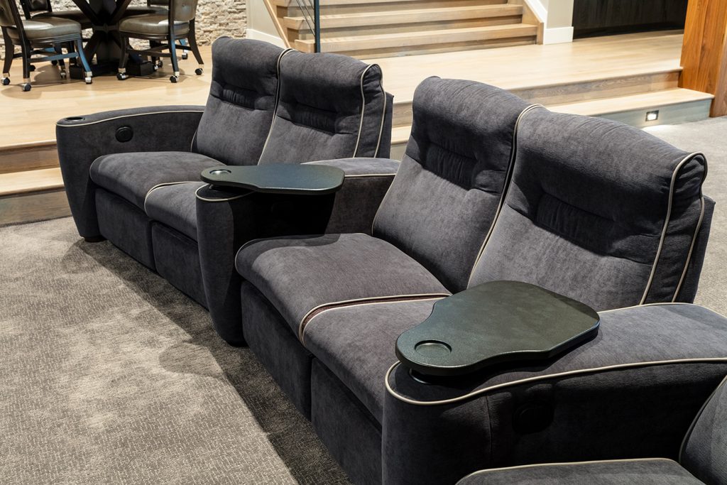 The good news? This client was thrilled and loves the outcome. “The two-tone looks very, very slick!” it was reported. “Best of all, everyone in our family has the premier seat in the house in our new home theater and entertainment space.”