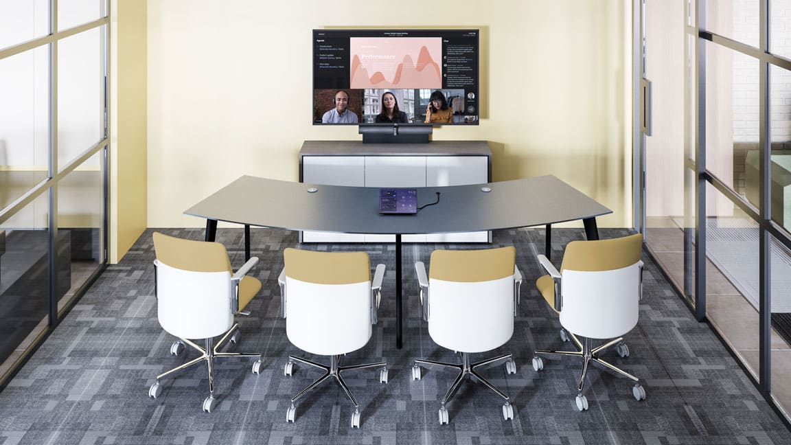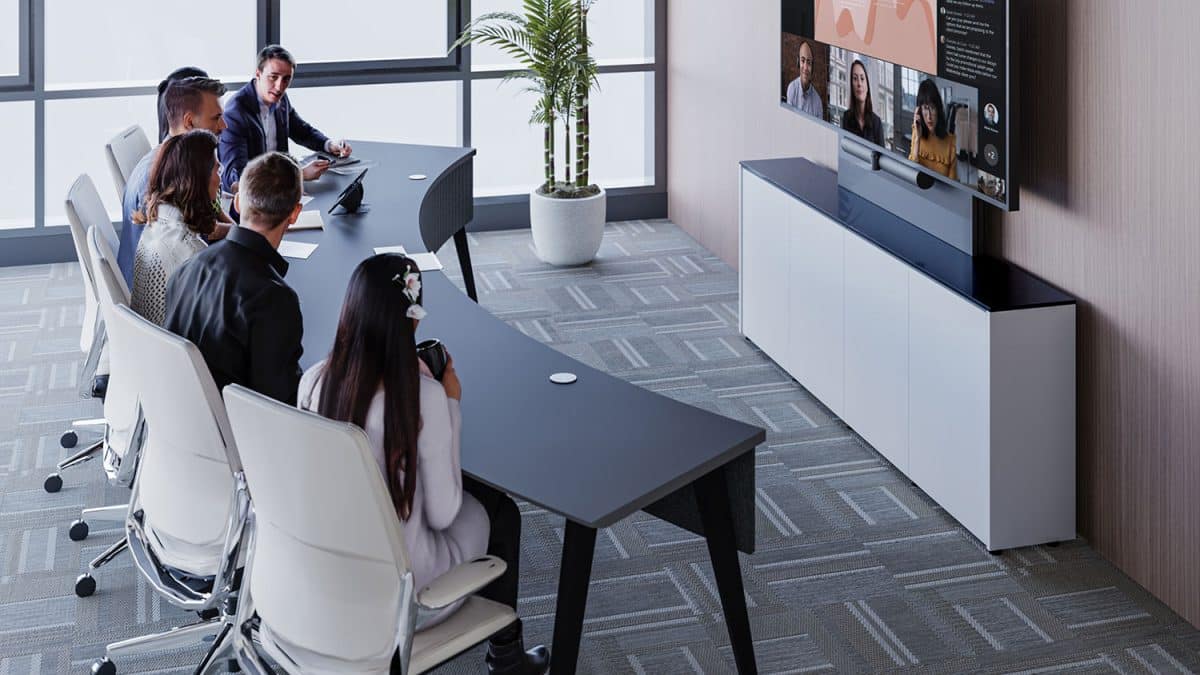 The Salamander Designs Arc Table modular conference system is optimized for enhanced collaboration between in-house and remote meeting participants. The innovative, unique curved semi-circle shape and flexible configuration options sets the stage for the most natural, inclusive site-to-site viewing experiences where every participant can be equally seen, heard and fully engage. This new arrangement creates a complete sense of inclusivity in hybrid settings, no matter where members are – in the room or in a remote location.
