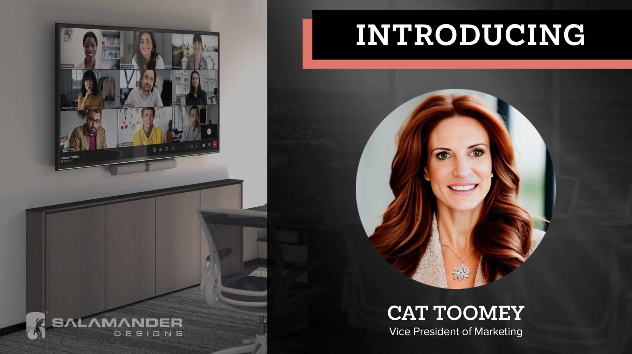 Bloomfield, CT — January 14, 2025 — Salamander Designs, the recognized leading provider of premium quality A/V technology furniture for residential and commercial markets, has announced that industry veteran Cat Toomey has joined their senior leadership team as vice president of marketing. The news comes on the heels of Salamander’s December announcement of naming Scott Srolis the company’s president. Cat will bring her extensive industry expertise, vision, strong relationships, and skills to advance Salamander’s marketing strategies and customer programs worldwide. She will also continue as CEO of CATalyzing Communications, the agency she founded eight years ago, with support from her team, for non-competing firms.