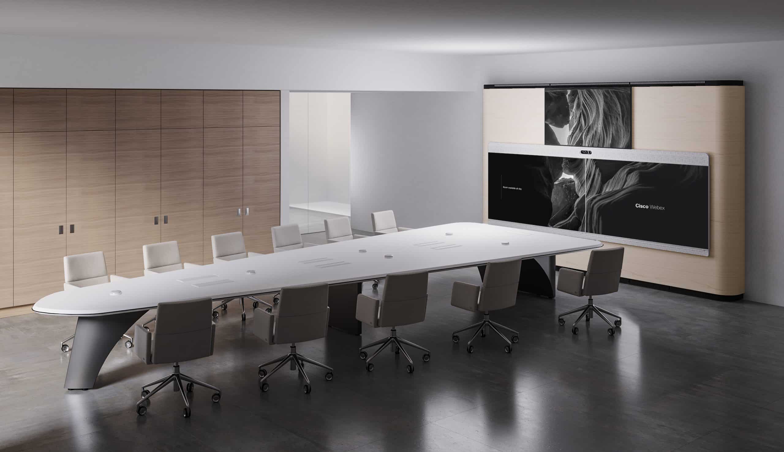 “Cisco is committed to an inclusive future for all”, said Chris Böttger , Cisco’s Intelligent Workplace leader. “The Cisco Room Panorama is the next generation of the modern collaboration room and uses Smart AI with triple large 8K displays, ensuring that the near and far end feel as if they are sitting at the same Infiniti table. Salamander Designs and Cisco collaborated to create the modern Infiniti table to deliver an experience that is engaging and collaborative and ensures everyone feels included not matter where they are.”
