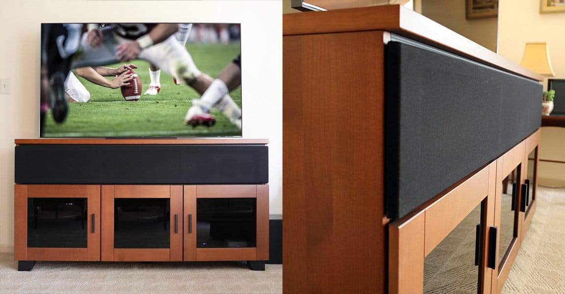 En raison de la luminosité ambiante relativement forte dans la salle familiale, Snedaker a recommandé un téléviseur QLED Samsung QN65Q9FNA 65 pouces, qui peut être apprécié dans de nombreux environnements lumineux différents. Pour profiter d'un son riche, ils ont installé un caisson de basses Bowers & Wilkins ASW610 série 600 de 10 pouces et une paire d'enceintes satellites Bowers & Wilkins M-1 pour l'arrière. Pour compléter ce système home cinéma, ils ont ajouté un récepteur AV Integra DRX-2.1 7.2 canaux.